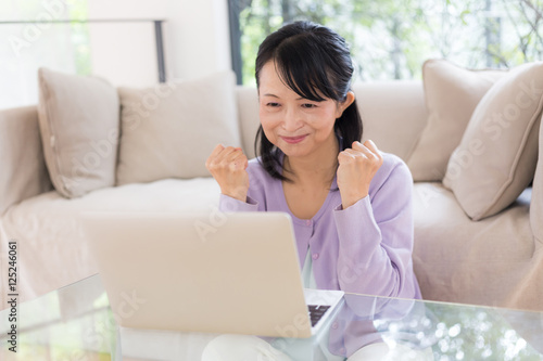 people, woman, japanese, 50's, 60's, middle-aged, aged, aged, homemaker, casual, room, house, lifestyle, smile, second life, personal computer, personal computer, cyberspace, web, mail, search, examine, pursuit, motion picture, work, work, videophone, sideline, cheer, cheer, hustle, effort, rejoice, guts, hustle, aim, achievement