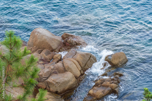青く輝く海と岩の風景