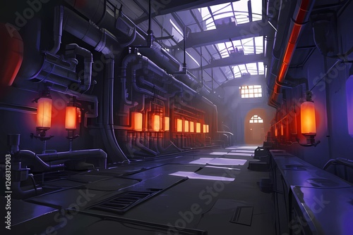 ゲーム背景 工業都市ビル内迷宮風景通路