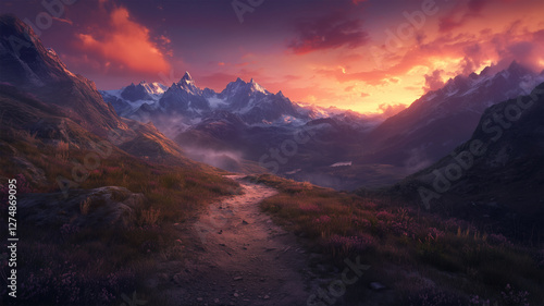 mountain, trail, hike, sunset, journey, nature, grandiose, mountain, rock, wilderness, adventure, quest, roman, nature, sky, red, purple, orange, wild, solitude, quiet, liberty, travel, far, solemnity, climb, outdoors, cloud, sunshine, vitality, summer, wind, grandeur, powerful, mystic, fascinating, earth