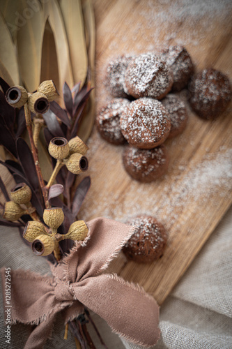 truffle, chocolate, cocoa, sugar, icing sugar, shake, sweet, richness, confectionery, white, pretty, clean, lovely, wonderful, grain, gift, sip, snack, pastry chef, ribbon, northern europe, grain, gift