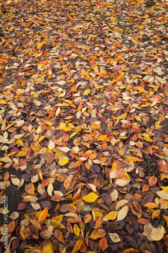 紅葉した葉が降り積もった地面
