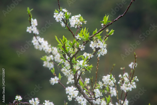 満開のスモモの花。