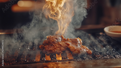 炭火で焼かれる和牛、香ばしい湯気とともに広がる至福の瞬間