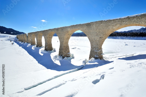 hokkaido, winter, mountain, landscape, cold, glacé, lake, ice, ice, decay, dangerous, blue skies, sky, bridge, snow, snow, heritage, hydro