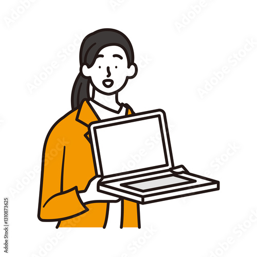 ノートパソコンを持つ上半身の女性会社員のシンプルなイラスト素材