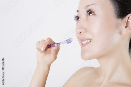 people, japanese, asian, woman, 30s, adult, room, indoor, portrait, copy space, cosmetic, health, cary, prevention, white, toothpaste, toothbrush, dentist, dental, clinic, plaque, plaque, fungal, implant, gum, health, teeth, mouth, hospital, clean, light, smile