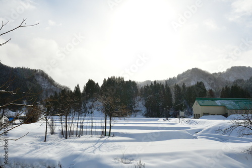 snow, winter, idyl, rice field, sunny, nature, landscape, landscape, view, tour tourism, tourist attraction, cold