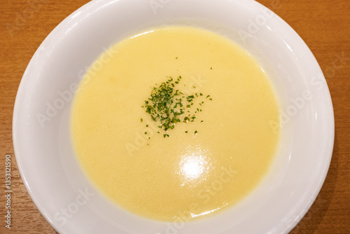 soup, potage, dinner, food, drink, deli, eatery, parsley, vegetable, copy space, indoor, closeup