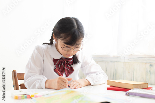 student, woman, people, friends, woman, study, girl, preparatory school, student, high school, school, japanese, training, learn, learning, uniform, schoolgirl, youth, copy space, young, classroom, vest, ribbon, sweet, schoolgirl, fellow, peer, indoor, youth, grade, preparation, revision