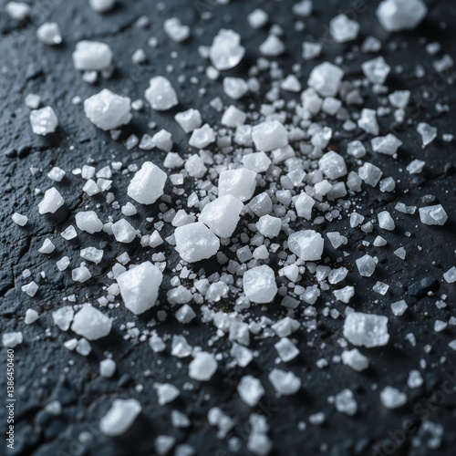 덩어리 소금을 바닥 위에 뿌린 뒤, 이를 클로즈업한 사진