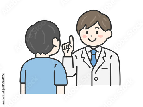 問診する、男性医師(線画カラー)のイラスト