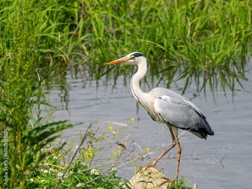 heron, heron, heron, bird, waterfront, river, stream, sunny, spring, unmanned, japan, verdure, green, plant, leaf, wild, animal, water, landscape