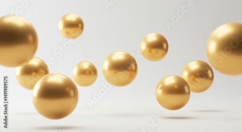 浮かぶ金色の球体、抽象的な背景素材