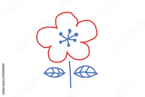 flower, illustration, handwriting, plant, northern europe, flower petals, vector, sweet, flower, design, ornament, nature, line, rough, vegetation, leaf, natural, red, blue, floral