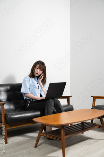woman, notebook, business, mobile phone, smartphone, office, cyberspace, tablet, businesswoman, work, noto, call, lifestyle, technology, computer, couch, person, beauty, student, familiar, indoor, reading, home, desk, professional, table, online, 1, success, japanese