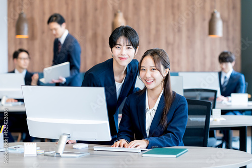 smile, office, business, work, woman, young, 30s, employee, team, salaried employee, smile, corporation, work, corporate, desk, copy space, suit, businessman, ol, colleague, indoor, indoor, man, office, personal computer, input, temp, table, missy, portrait, japanese, people, career woman