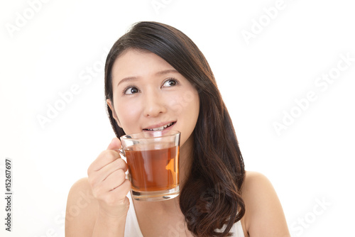 japanese, woman, people, drink, people, tea, herbal tea, teacup, dish, meal, sweet, clean, adult, young, diet, calorie, drink, delicious, cosmetic, health, lifestyle, smile, smile, happiness, relax, refresh, alimentation, beauty, model, girl, fun, lively, expression, alone, eatery, coffee, eatery, okinawa, japan, asian, copy space, waist up, white background