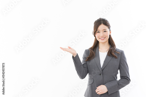 communicate, palm, career woman, refer, employee, people, woman, young, japanese, asian, stripes, black hair, smile, smile, smile, copy space, waist up, business, ol, suit, 30s, grey, sweet, clean, work, pretty, beauty, temp, skill, chief, manager, job hunting, qualification