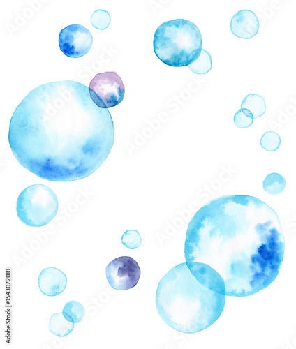 water, water surface, blue, sky blue, blue, waft, toss, cool, summer, cold, cool, sparkling, shiny, light, glowing, watercolor, background, textured, blank space, copy space, message, purple, purple, pois, bubble, foam, float