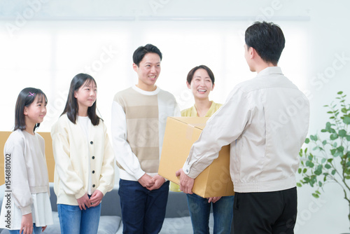 move, relocation, recycling, cardboard, disposal, family, family, baggage, transport, transport, logistic, packaging, packing, container, circulation, delivery, house, property, new life, working man, workwear, staff, chuck, trash, couple, woman, man, woman, smile, japanese, asian
