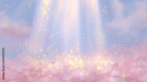 効果背景 ピンクの雲と金色の光が降り注ぐ幻想的な背景