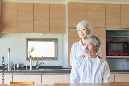 aged, couple, couple, kitchen, cuddle, smile, relax, relax, life, house, home, aged, aged, silver, grandfather, nanny, elderly, second life, 60's, longevity, longevity, woman, man, japanese, health care, health, care, welfare, inheritance, nursing home, dining, peace, insurance, retire, people