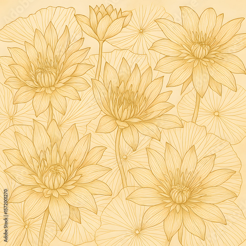 ゴールドの蓮華線画アート