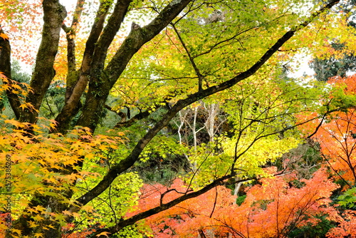 京都、紅葉、佛寺、寺院、文化財、木造建築、古代建築、日本文化、歷史名勝、古都京都の文化財、木、綠色、青空、秋、絶景、写真素材