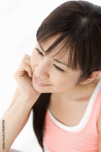 cosmetic, beauty, people, woman, japanese, alone, health, lifestyle, singlet, smile, smile, relax, portrait, man