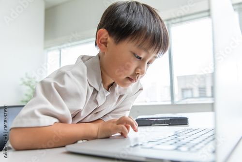 personal computer, operation, children, june, online, computer, notebook, monitor, school, study, training, classroom, seated, home, homework, people, meeting, boy, japan, toddler, assignment