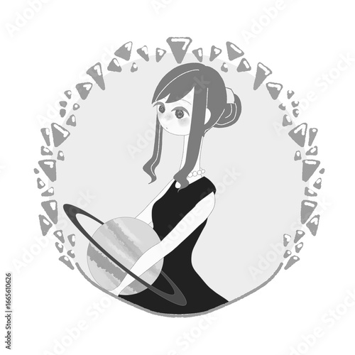 woman, planet, fortune-telling, saturn, people, girl, sweet, woman, image, elegant, personification, fashion, cartoon, icon, lady, glamour