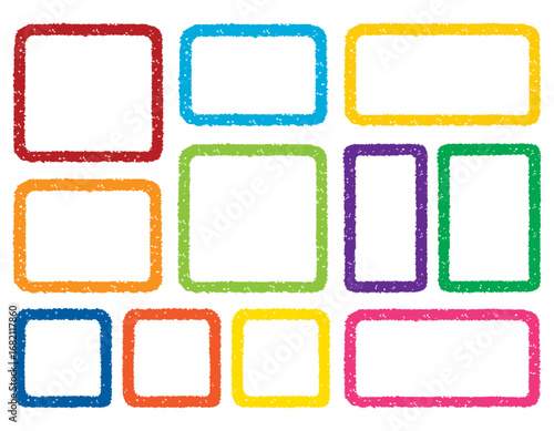クレヨンラインの角丸四角フレームセット/カラフル