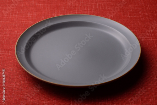 dish, plate, dish, copy space, space, background, dish, tableware, household goods, ceramic, circle, yen, hollow, round, round, porcelain, background, grey, grey, table, meal, red