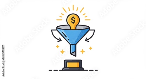 funding, business, idea, funnel, marketing, investment, success, planning, strategy, finance, illustration, vector, design, blue, yellow, icon, profit, sale, creativity, idea