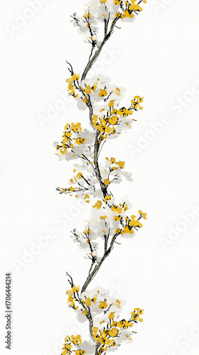 peduncle, modern, pattern, border, ornament, geometry, texture, plant, leaf, flower, navy blue, yellow, off-white, graphic design, digital, art, daintiness, cut diamond, grace