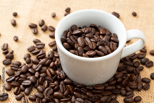 コーヒーカップとコーヒー豆