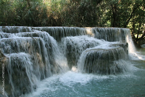 waterfall, plant, wood, nature, grove, forest, vision, view, landscape, landscape, tour tourism, mekong, stream, river, river, emerald green, lime, la, indochina, southeast asia, asia