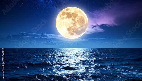 海に映る光り輝く満月と宇宙のエネルギー