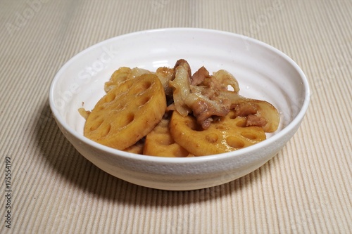 meal, side dish, dish, meat, lotus, vegetable, delicious, lunch, pork, side dish