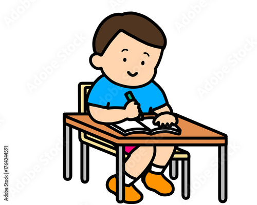 asian, asia, black hair, write, noto, note, seated, school, school, study, classroom, chair, table, desk, chair, table, children, children, friends, sweet, fun, smile, lively, chum, colourful, people, boy, health, toddler, character, illustration, smile