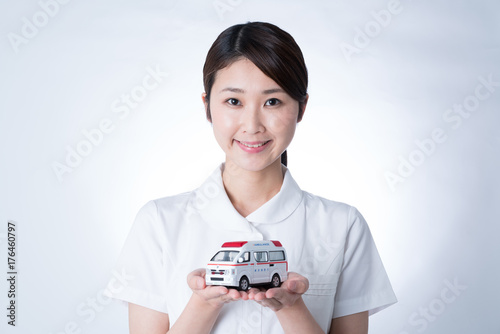 woman, ambulance, nurse, nurse, nurse, marode, medical care, hospital, accident, health, emergency, lifesaving, labcoat, doctor, smile, appealing, japanese, people, model, portrait, asian, sweet, beauty, car, car, toy, white, white background, background