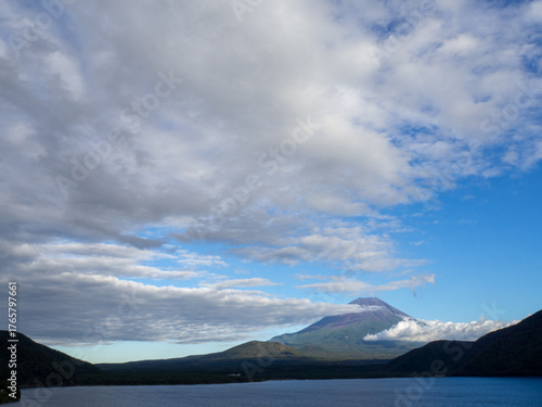 fuji, japan, mountain, landscape, sky, water, nature, cloud, travel, view, lake, blue, beauty, hill