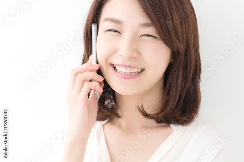 woman, smartphone, smartphone, mobile phone, call, mobile, cyberspace, smile, sweet, pretty, pretty, clean, joyful, rejoice, fun, happy, speaking, conversation, call, contact, girl, people, white, white background, lifestyle, live, life, business, career woman, work, work, ol, 30s, adult, homemaker, japanese, asian, office, cosmetic, advisory, spend, incoming, app, room