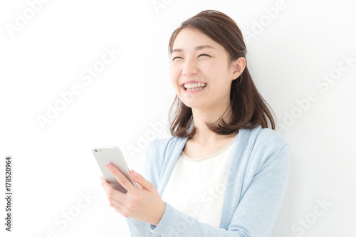woman, girl, smartphone, smartphone, mobile phone, call, mobile, mail, cyberspace, net, young, white, white background, smile, sweet, pretty, pretty, clean, people, business, cardigan, ol, employee, work, work, qualification, blue, blue, sky blue, adult, homemaker, student, cosmetic, beauty, health, live, lifestyle, japanese, asian, joyful, rejoice, fun