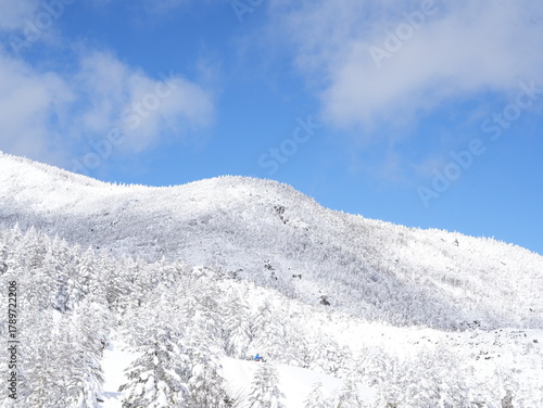 blue skies, snow, mountain chain, whiteness, cold, nature, landscape, outdoors, climb, backlighting, contrast, plateau, takayama, mountain, conifer, monotone, quiet, pure