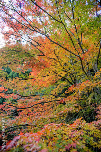総社市豪渓の紅葉が最盛期で色とりどりの風景が綺麗