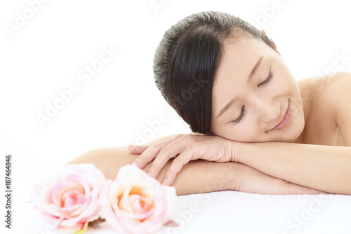 japanese, woman, people, woman, skincare, este, massage, cosmetic, health, people, young, adult, sweet, clean, facial, health spa, make-up, make-up, skin, face, relaxation, relaxation, relax, healing, aromatherapy, model, girl, smile, happy, lovely, beauty, lifestyle, resort, tourist attraction, alone, japan, okinawa, asian, waist up, white background, copy space, flower