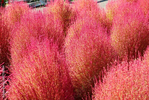 赤く紅葉したコキア