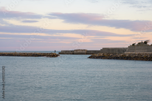 fishing, angler, sea, pier, sunset, dusk, golden hour, sky, cloud, landscape, quiet, pursuit, vacation, lifestyle, fishing port, port, beach, nature, japan, blue, cool, summer, background, design, pastel colour, pink, purple, water surface, levee, horizon, beach, quay, fishing, fishing, copy space, blank space, refreshing, immensity, view, open air, environment, weekend, outdoors, walk, journey, tour tourism